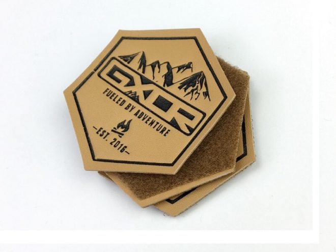 The pu leather label can be iron-on tee shirts, hat, pants, shorts etc.